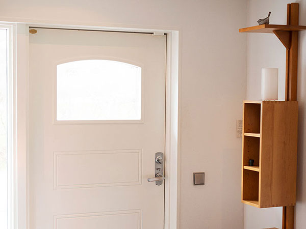 スニッカルペール社の玄関ドアは、標準仕様であっても非常に高い安全性を備えています。高い形状安定性を保つために設計された5層構造の扉が特徴です。ガラス付き玄関ドアは、省エネの断熱ガラスを採用しています。