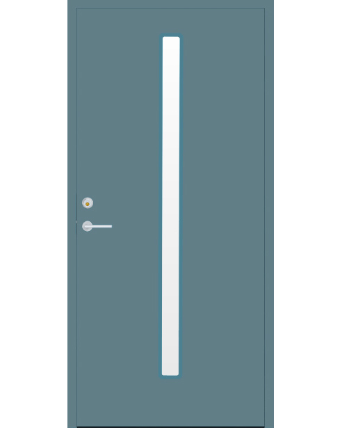 ブルーは、デンマークとスウエーデンのエーレ海峡を結ぶオーレスン橋の欄干色で海の青、空の青に映えるブルーをイメージしておりふわっと浮き上がる玄関ドアをご想像ください。